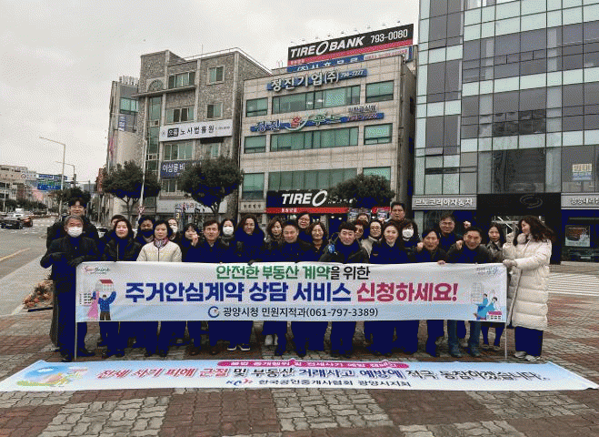 한편, 광양시는 시민의 주거 안정을 위협하는 깡통전세 등 전세사기를 사전 차단하기 위해 전문 공인중개사로 구성된 주거안심계약 상담사를 통해 전 · 월세 무료상담 서비스를 운영하고 있다.