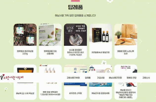 해남군 고향사랑기부제 누리집은 고향사랑기부제의 내용을 널리 알리고 기부 참여를 독려하기 위해 쉽고 편리하게 관련 정보를 한눈에 접할 수 있는 다양한 콘텐츠를 담았다.