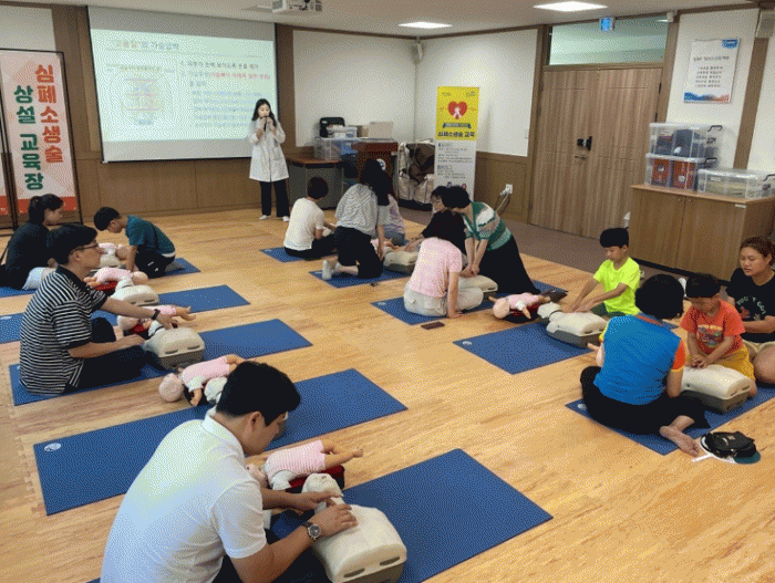 교육은 ▲의식확인 요령 ▲119 신고요령 ▲올바른 심폐소생술 자세와 방법 ▲심폐소생술 실습 ▲자동심장충격기(AED) 사용 방법 ▲자동심장충격기 실습 ▲기도 폐쇄 시 응급처치 방법 순으로 진행됐다.