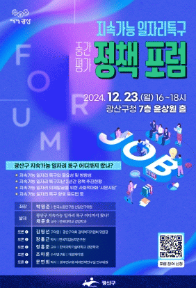 ‘광산구 지속가능 일자리특구 어디까지 왔나’를 주제로 여는 포럼에는 노동‧일자리 전문가, 광산구 지속가능 사회적대화 추진단, 지속가능 일자리 의제발굴단, 노동자, 시민 등 100여 명이 참석할 예정이다.