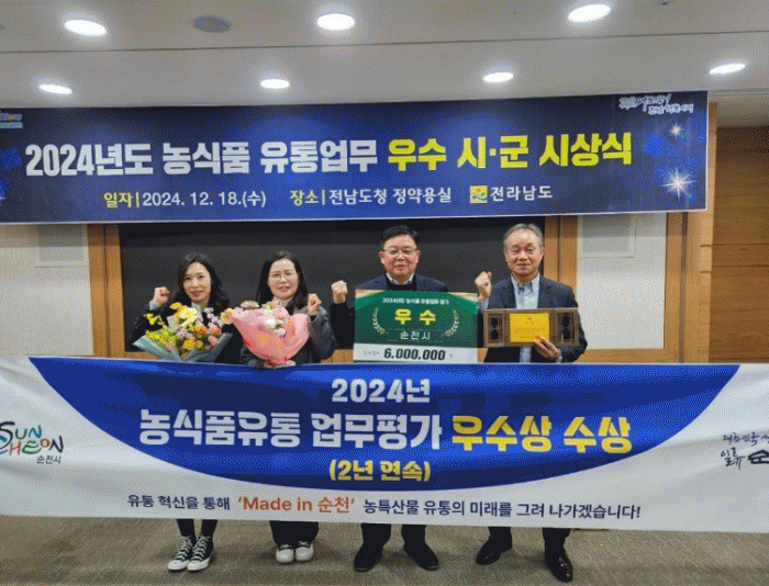 이번 수상은 전라남도가 주관하여 도내 21개 시군을 대상으로 실시한 평가에서, 농특산물 온·오프라인 유통 활성화, 농식품 산업 기반 구축 및 품질 관리, 쌀 판매 및 브랜드 쌀 육성, 산지유통 경쟁력 강화 등 4개 분야 14개 항목에서 순천시가 전 부분 우수한 성과를 인정받은 결과다.