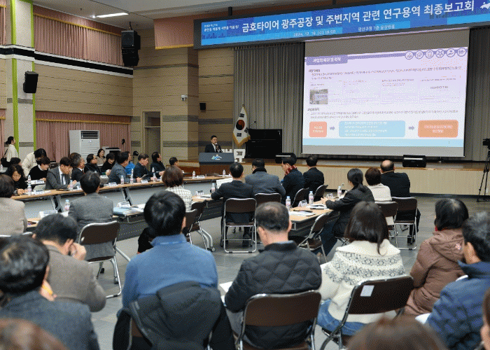 광주 광산구는 18일 구청 7층 윤상원홀에서 ‘금호타이어 광주공장 및 주변 지역 도시환경 영향 기초조사 및 발전 방향 모색 연구용역’ 최종보고회를 열었다.