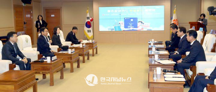 광주광역시(시장 강기정)는 18일 시청 비즈니스룸에서 5개 자치구, 광주은행과 함께 ‘광주상생카드 특별할인 공동추진 업무협약’을 체결했다.