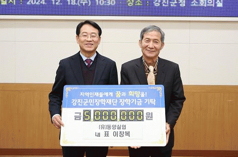 이창복 대표는 “학업에 열중할 수 있는 교육환경 조성에 많은 도움이 되길 바란다”며 “앞으로도 강진군민장학재단 이사회의 일원으로서 강진군 교육 발전을 위한 다양한 활동을 계속해 나가겠다”라고 말했다.