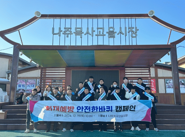 이번 캠페인에는 나주시, 나주소방서, 목사고을 시장상인회 등 30명이 참여하여 시장 내 위험 요소를 찾아 안전신문고에 신고하고 개선해 나가는 활동을 펼쳤다.