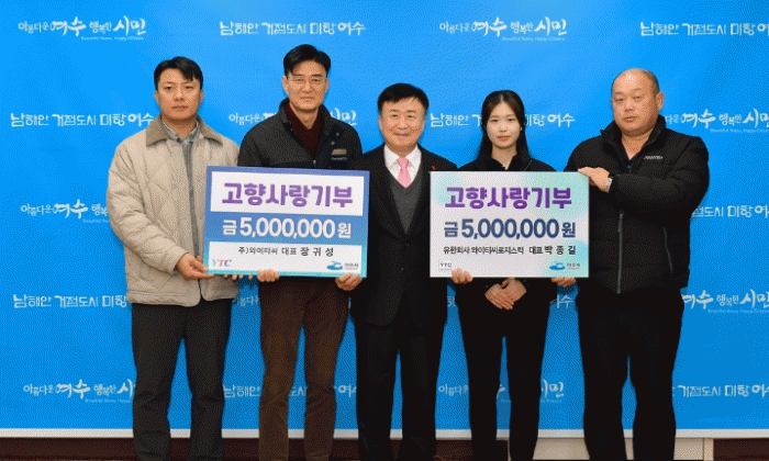 장귀성 대표는 “모두가 어려운 시기를 보내고 있는 상황에서 지역사회에 긍정적인 영향을 미치길 바라는 마음으로 기부를 결심했다”고 밝혔으며, 박종길 대표는 “여수가 더욱 살기 좋은 도시로 발전하는 데 작은 힘이나마 보태고 싶다”고 전했다.