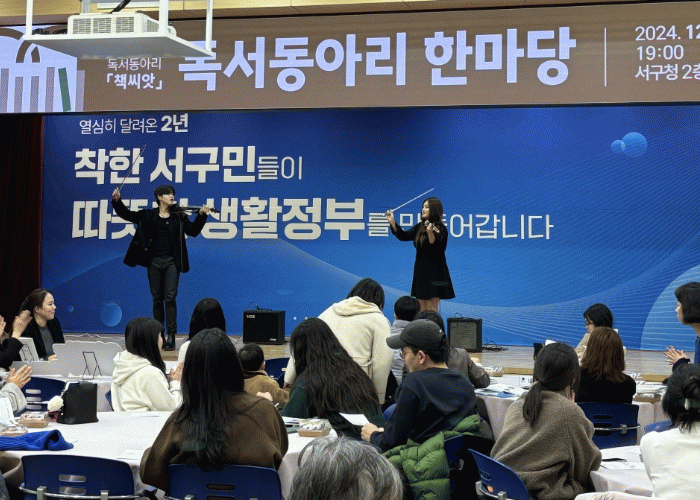 김이강 서구청장은 “독서동아리 활동은 단순히 책을 읽는 것을 넘어 책 속에서 만난 감동과 울림을 나누며 서로의 생각을 공유하는 활동이다”며 “다가오는 2025년에도 착한도시 서구는 함께하는 독서를 통한 나눔의 가치를 확산하고 사람들 간의 소통의 장을 더 많이 만들어 가겠다”고 말했다.