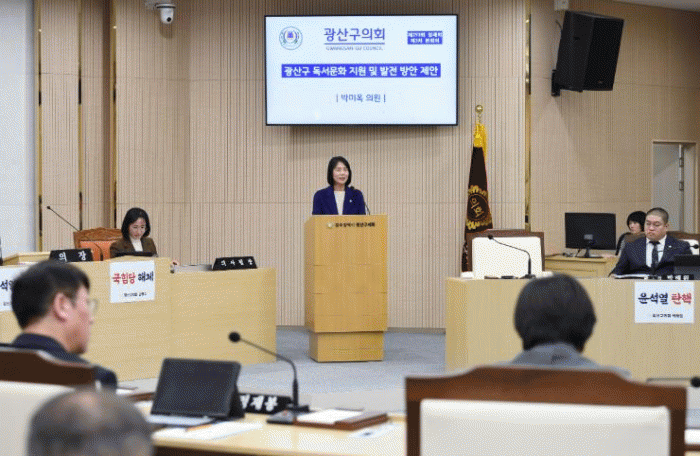 박미옥 의원은 “광산구의 솔선과 시민의 관심 속에서 광산구가 독서문화 선도지역으로 자리매김하기를 기대한다”고 당부하며 5분 자유발언을 마쳤다.