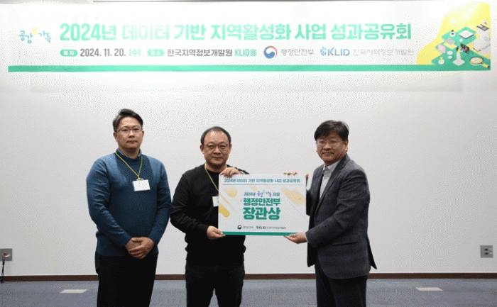 2024년 ‘데이터 기반 지역 활성화(공감e가득) 공모사업‘에서도 행정안전부 장관상을 수상했다.