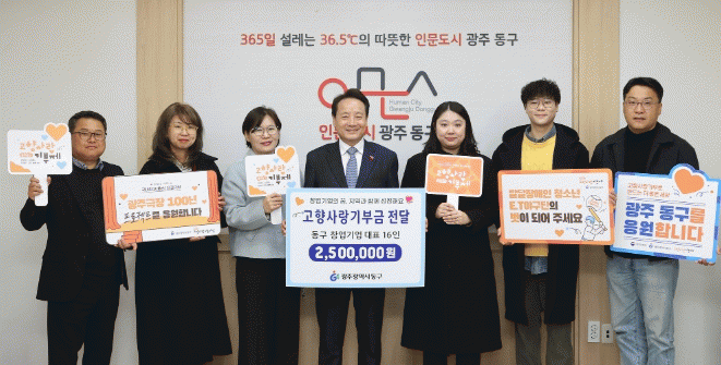 이번 기부는 창업기업들이 “지역과 함께 성장하는 기업”이라는 가치 실현을 위해 뜻을 모은 것으로, 전달된 기부금은 동구 발전과 주민 복지사업에 활용될 예정이다.