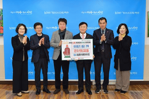 이번 성금은 전남사회복지공동모금회에 지정 기탁돼 여수시 관내 저소득 가정과 사회복지시설을 위한 맞춤형 복지서비스 사업으로 사용될 예정이다.