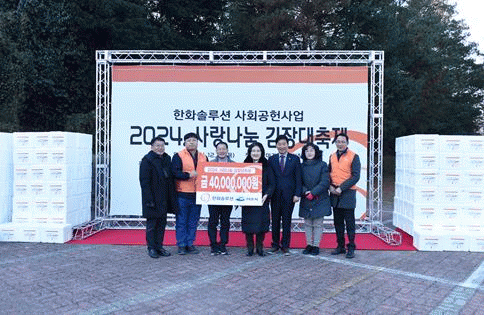 한편, 한화솔루션㈜은 여수시지역사회보장협의체와 지난 2020년 업무협약을 맺고 매년 김장나눔을 비롯해 나눔냉장고 후원물품 전달, 섬 지역 어르신 위생용품 지원, 이동세탁차량 지원 및 윙바디 사업 등을 시행하고 있으며, 현재까지 후원 금액은 2억 3,600만 원에 이른다.