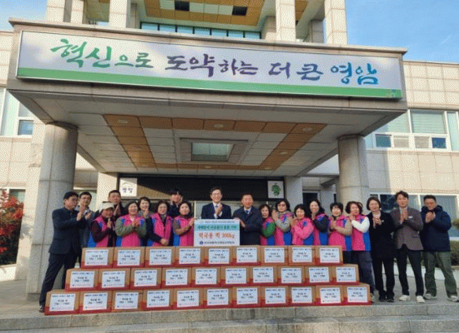 이날 연합회의 기부는 20년째 이어져 오고 있는 것으로, 해마다 영암군 11개 읍·면 회원들이 농사지은 쌀을 모아 12/16일부터 19일 영암군농업기센터에서 떡을 만들어 나누고 있다.