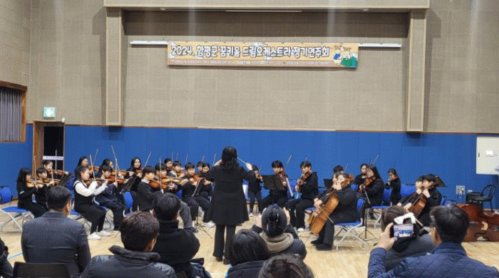 한편 함평군 꿈키움 드림오케스트라는 2017년에 시작되어 현재 40명의 단원들이 매주 수요일 기산초등학교 강당에서 전문 강사의 지도하에 실력을 키워나가고 있다.
