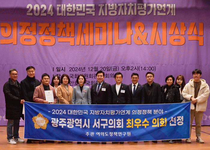 광주 서구의회는 2024년 한해동안 전승일 의장을 비롯한 13명의 의원이 지역발전을 위한 활발한 의정활동과 사회적 약자를 위한 정책과 조례 제정에 힘쓴 점을 인정받아 전국 기초의회 중에는 유일하게 이번 상을 수상했다.