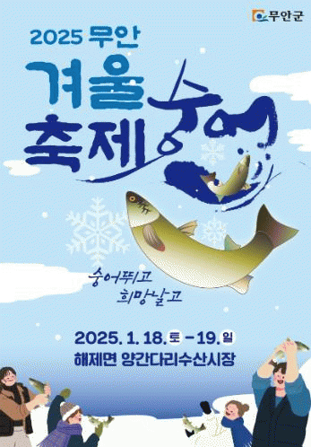 김산 군수는 “2025년 1월 무안을 방문하여 겨울철 별미, 건강한 먹거리인 숭어로 건강과 맛도 챙기고 무안 청정 갯벌을 품은 겨울 바다와 서해안 황금빛 노을의 아름다움을 마음껏 즐겨 달라”고 말했다.