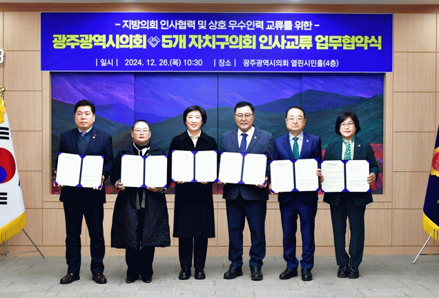 한편, 광주시의회에서는 시의회와 자치구의회 간 계획 인사교류의 시행근거가 되는 '광주광역시의회 지방공무원 인사교류 규칙'을 지난 11월 1일자로 제정했으며, 인사교류를 위한 세부사항 등은 향후 실무 논의를 통해 추진할 계획이다.
