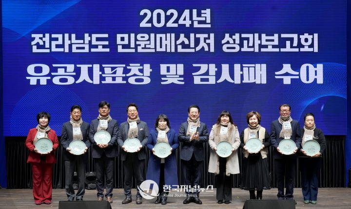 전남도는 24일 무안 스카이웨딩컨벤션에서 김영록 전남도지사, 김태균 전남도의회 의장, 민원메신저 등 200 여 명이 참석한 가운데 ‘2024년 전남도 민원메신저 성과보고회’를 개최했다.