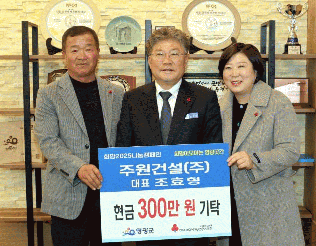 영광군 관계자는 “모두가 어려운 상황에서도 따뜻한 정성을 모아주신 조효형 대표님께 감사드린다. 이번 기탁이 나눔 문화를 더욱 확산시키는 계기가 될 것이며, 나눔 활동이 널리 알려져 더 많은 군민이 기부활동에 동참할 수 있기를 바란다.”라고 말했다.
