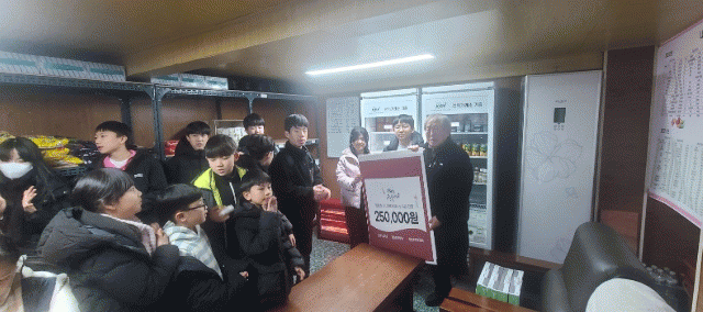구례군은 지난 24일 산동원촌초등학교 학생과 학부모들이 '산동 나누고 가게'를 방문해 성금 25만 원을 지정 기탁 했다고 밝혔다.