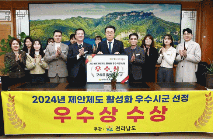 화순군은 이번 평가에서 상시 제안 활성화를 위해 ▲정책 아이디어 공모전 ▲공무원 1인 1제안 ▲제안제도 활성화 우수부서 시상 ▲혁신 주니어보드 운영 ▲우수 제안을 시상하는 등 양질의 제안을 발굴하고자 노력한 점을 인정받아 제안제도 활성화 평가에서는 첫 수상의 영예를 안았다.