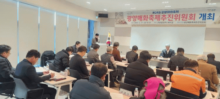 김종호 광양매화축제추진위원장 주재로 열린 이번 회의에는 위원 및 관계 공무원 20여 명이 참석해 축제 기본계획(안)을 청취하고 축제 기간, 콘텐츠 확대, 축제 명칭 등을 논의했다.