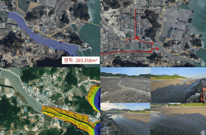 이를 충족하는 갯벌의 물리적 지형구조는 조금 때는 밀물이 차오르지 않으나, 백중사리 때는 최대 수위로부터 갯벌 바닥까지 깊이가 1.8m 이내인 갯벌이 최적지로 나타났다.