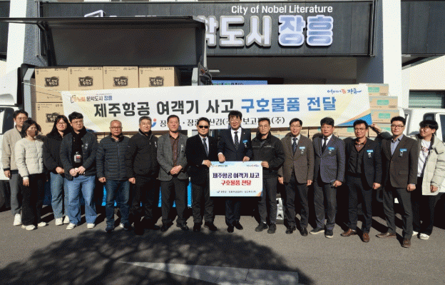 장흥군은 장흥무산김(대표 김형수)가 기탁한 삼단도시락김(300만원 상당)과 함께 구호품을 무안공항에 전달했다.