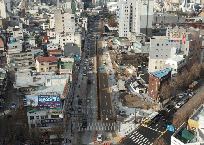 동구 광산길은 국립아시아문화전당 주진입도로로, 기존 2차로에서 5차로로 확장하고 도로 양측에 폭 3~4m의 보도를 조성했다.