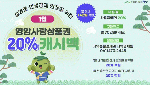 먼저, 영암군은 지역 소비 진작을 위해 영암사랑상품권을 전년 대비 100억 확대 발행할 계획이다.