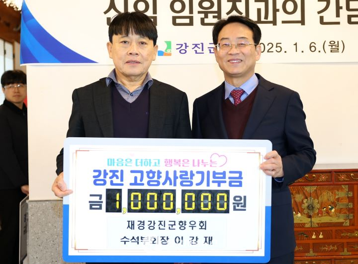 조 회장은 “맡은 소임을 다하고 공약 사항을 실현하며 재경강진군향우회의 발전을 이끌겠다”며 “고향사랑기부금이 강진군민에게 따뜻한 마음으로 전달되기를 바란다”고 전했다.