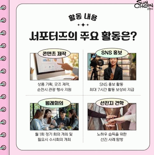 시 관계자는 “단순히 여행 정보를 제공하는 것을 넘어서 순천 관광의 숨은 가치를 발견하고, 여행의 주된 수요층인 청년들의 시각에서 다양한 창의력을 발휘할 수 있는 좋은 기회가 되기를 바란다”고 말했다.