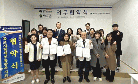 이번 협약식은 2025년 새해 첫 협약식으로 매우 의미가 크며, 장은채 목포시장애인종합복지관장과 문용진 부부요양병원장, 최태옥 대표원장 등 기관 관계자 12명이 참석한 가운데 상호 간 신뢰와 협력 아래 상호 발전을 도모하고, 장애인의 요양·치료를 통한 양질의 의료복지서비스 제공 및 지역사회 복지증진을 기여하기 위해 진행되었다.