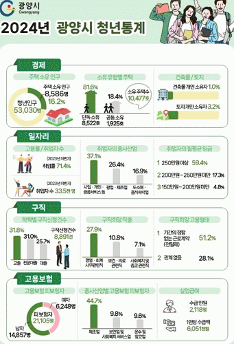 통계조사에 따르면 광양시 19∼45세 이하 청년인구는 53,030명으로 시 총인구의 34.7%를 차지했다.