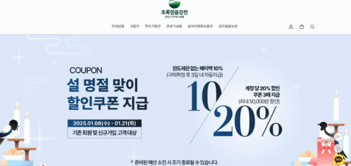 초록믿음은 이번 설 명절 행사를 통해 신규 고객 유치뿐만 아니라 기존 고객의 재방문율을 높여 강진군 농수특산물의 판로 확대와 쇼핑몰 활성화에 기여할 것으로 기대된다.