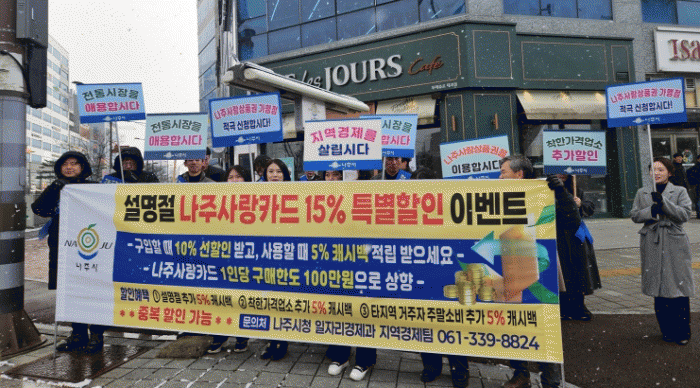 나주시는 1월 ‘설 명절 전통시장 10% 페이백’, ‘나주사랑카드 추가 5% 캐시백 적립’, ‘타지역 거주자 금·토·일 나주사랑카드 사용 시 5% 캐시백’, ‘착한가격업소 5%추가 캐시백’ 등 풍성한 이벤트를 마련했다.