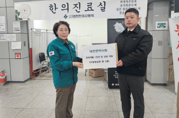 기부된 한방의약품은 우황청심환 등 3종류로, 사고 피해에 따른 체력 회복과 심리적 안정, 통증 완화 등을 돕는 데 사용될 예정이다.