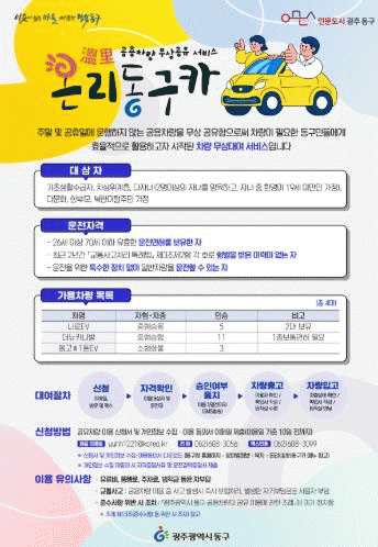 온리(溫里) 동구카 공유 서비스는 관내 사회적 배려 대상자(기초생활수급자, 차상위 계층, 다자녀, 다문화, 한부모 등) 가정을 대상으로 운영하며, 이용을 원하는 주민은 사전 신청해야 한다.