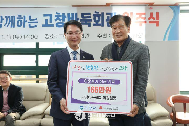 이날 고창바둑협회는 고창군에 불우이웃돕기 성금 166만원을 기부하여 추운 날씨와 갑자기 불어닥친 폭설로 어려움을 겪는 이웃들에게 따듯한 마음을 전하기도 했다.