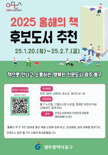 임택 동구청장은 “지역민의 참여로 모두가 공감하고 위로와 희망을 나눌 수 있는 도서가 선정되도록 주민 여러분의 적극적인 관심과 참여를 부탁드린다”면서 “올해의 책 선정을 바탕으로 다양한 독서문화프로그램을 펼쳐 나가겠다”고 말했다.