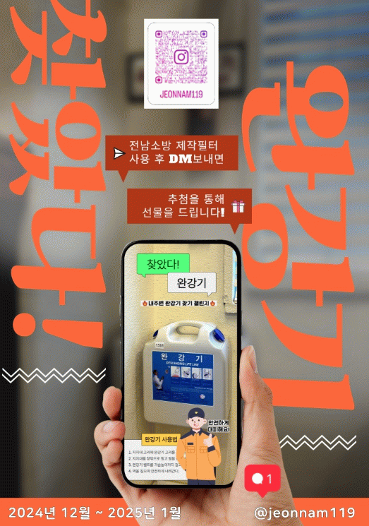 이번 캠페인은 시민들에게 완강기의 위치와 사용법을 자연스럽게 알리기 위해 전남소방에서 자체 제작한 완강기 AR 필터 3종을 활용한다. 참여자는 필터를 사용해 완강기를 찾아 촬영한 뒤, 이를 전남소방 공식 SNS 계정으로 메시지를 보내면 된다.