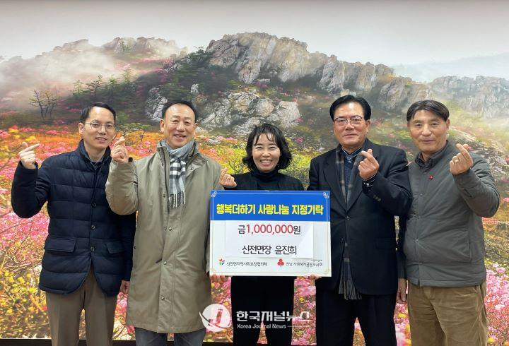김순옥 민간위원장은 "윤 면장의 따뜻한 마음과 후원이 주민들에게 큰 위로와 희망이 될 것"이라며 "기탁한 소중한 후원금은 신전면의 어려운 이웃을 돕는 데 전액 사용하겠다"고 밝혔다.