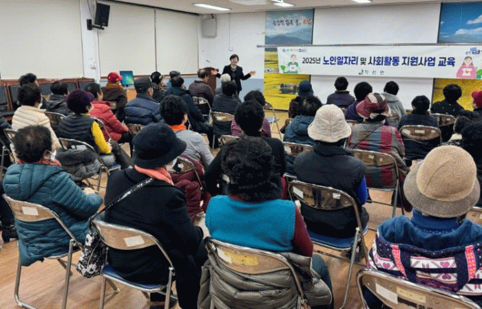 이날 교육에는 노인일자리 참여자 67명과 경로당 총무 4명 등 총 71명이 참석했다.