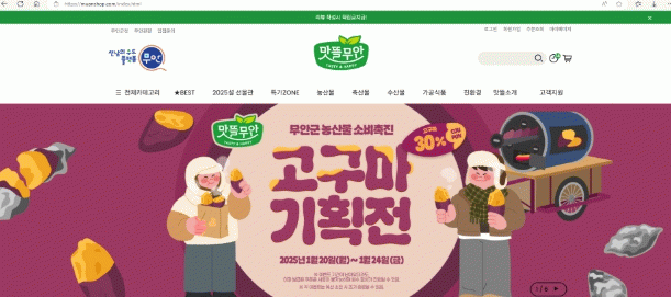 김산 군수는 “앞으로 맛뜰무안몰 활성화를 통해 지역 농산물의 가치와 경쟁력 향상에 최선을 다할 것이고, 소비심리 위축으로 어려움을 겪는 농가에 이번 기획전이 활력을 불어넣을 수 있길 바란다”고 말했다.