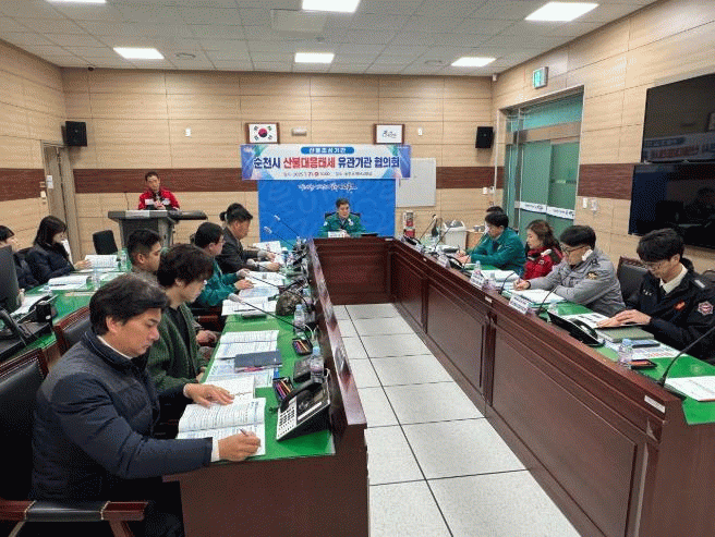 이번 협의회는 ‘설’ 연휴와 봄철 중점 추진 대책을 공유하고 협조체계 등을 논의하기 위해 시 안전총괄과를 비롯한 순천소방서, 순천경찰서, 제7391부대3대대, 순천국유림관리소, 한국전력공사 순천전력지사, 한전KPS(주) 광주전남전력지사 순천지점 등 7개 유관부서가 참석했다.