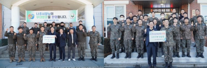 윤병태 나주시장은 “추운 날씨 속에서도 묵묵히 국방의 의무를 다하는 군 장병들이 따뜻하고 즐거운 명절을 보내기를 바란다”며 “재난·재해 상황에서 대민 지원과 복구 활동에 헌신한 군 장병들의 노고에 깊이 감사드린다”고 전했다.