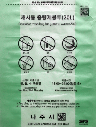 쓰레기 종량제 봉투 관련한 궁금 사항은 나주시 도시미화과로 문의하면 된다.