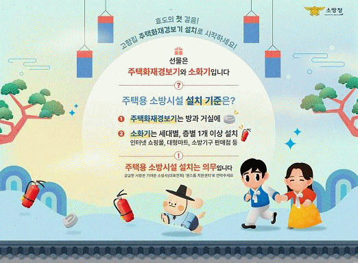 이번 홍보는 가족과 친지가 만나는 설 명절에 주택용 기초소방시설을 선물하여 안전한 명절을 보내자는 취지로 추진됐다.
