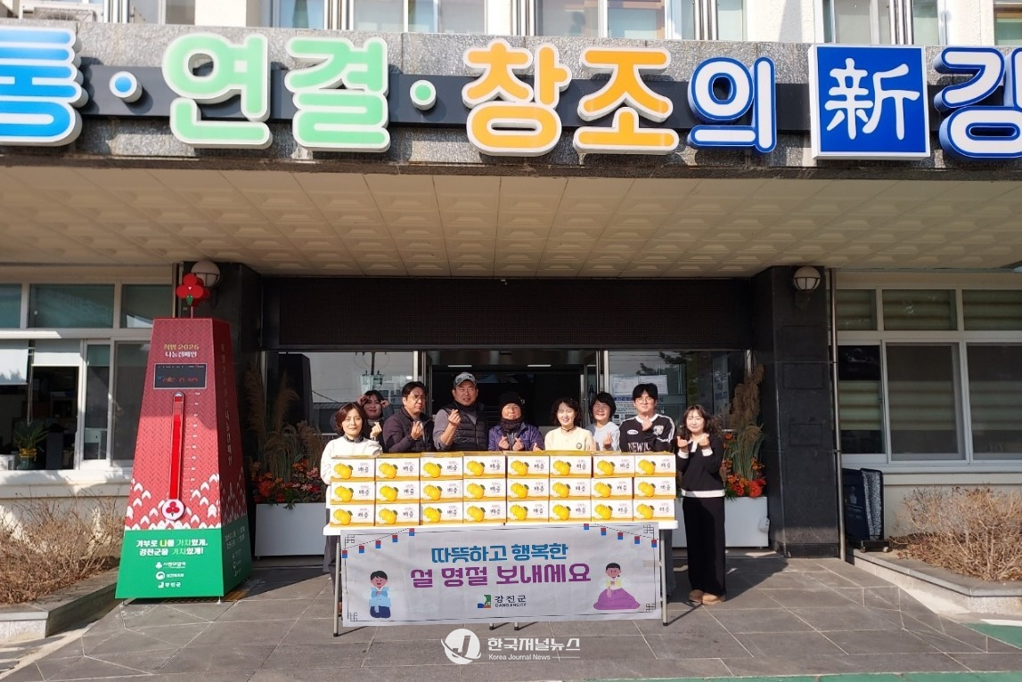 지난 23일 진행된 기탁식은 강진신문 오인환 대표이사가 떡 20상자(약 60만 원 상당), 늘푸른 농장 추대영 대표가 도라지배즙 90박스(225만원 상당), 강진군청 김왕석 주무관이 김치류와 곰탕 등(약 40만 원 상당)을 기부하며 나눔에 동참했다.