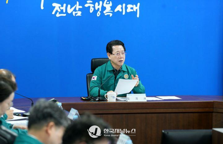 김영록 지사는 이날 오전 도청 재난상황실에서 실·국장 등이 참석한 가운데 설 연휴 재난대책 회의를 주재하고, 교통·시설·인명 보호를 위한 전방위적 대응 방안을 논의했다.